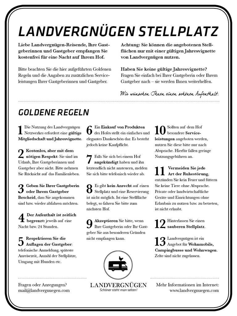 Gerne sind wir für Sie mit Ihrem Wohnmobil für eine Nacht Ihr Gastgeber.